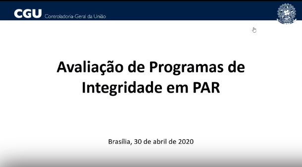 Live realizada pela Corregedoria-Geral da União (CRG), no âmbito do Webinapar, na qual foi abordada a respeito da avaliação do Programa de Integridade.